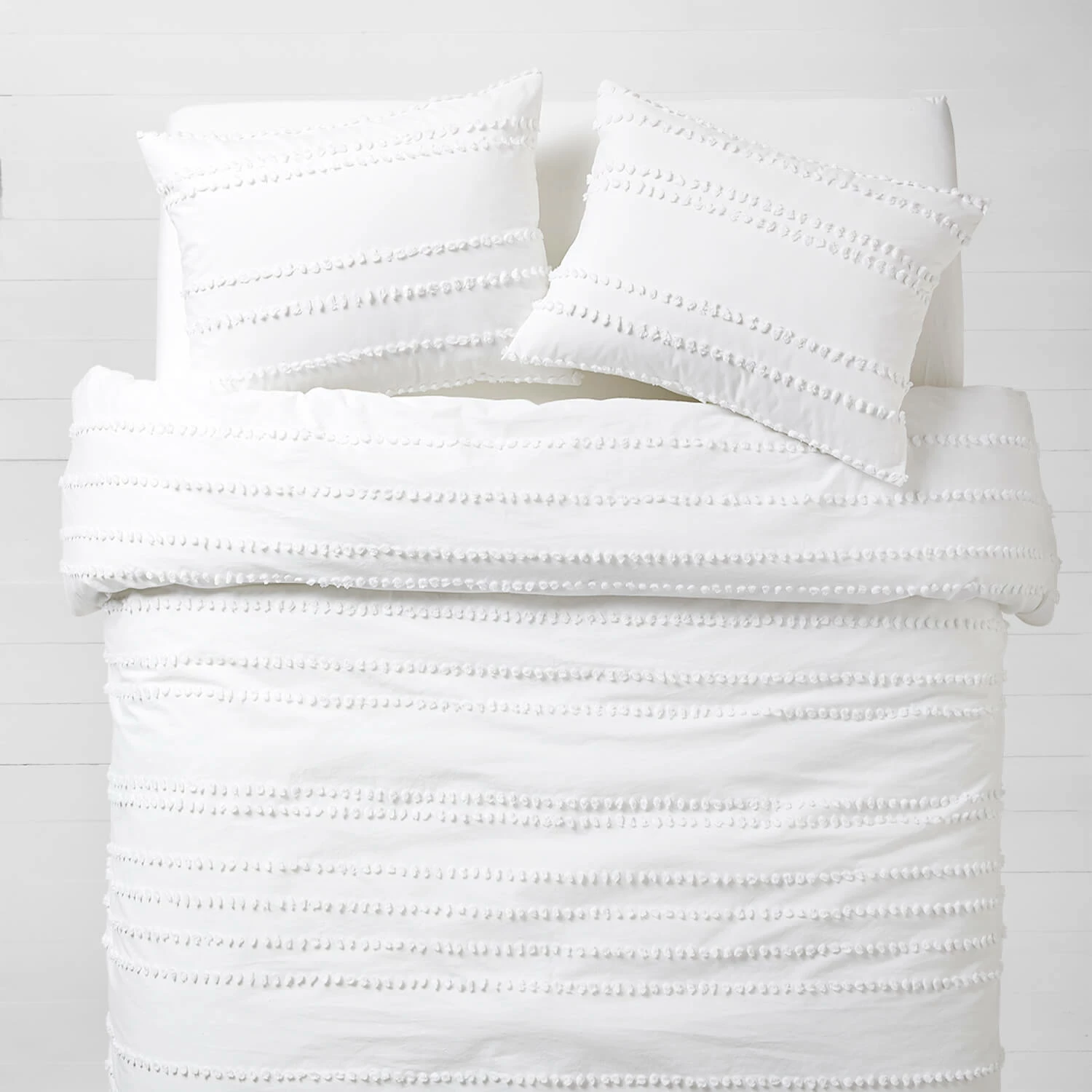 It’s all in the detail. Style it your way. Our Pom Pom Stripe Comforter and Sham Set brings simplicity and chic to any sweet boho bedding space. With the accents of pom poms, it’s perfect if you’re looking for a super clean look or to spice up with colorful pillows.