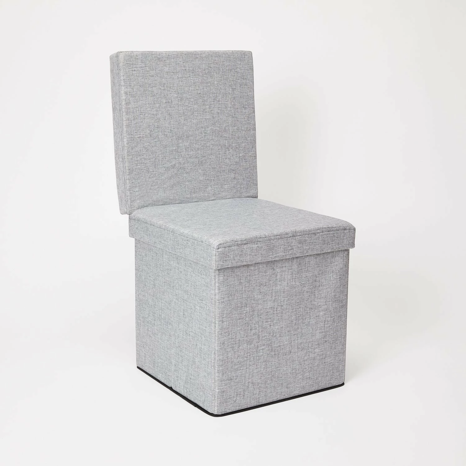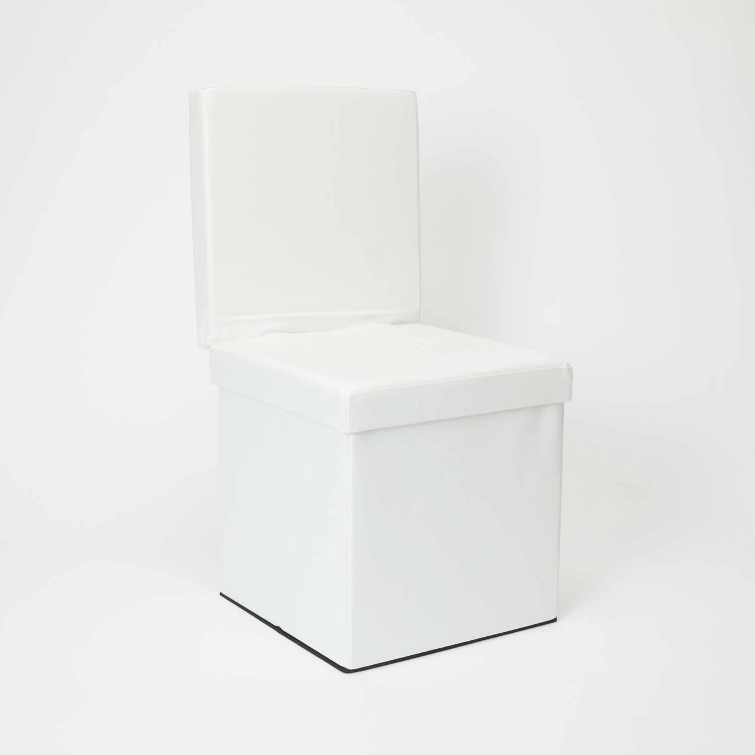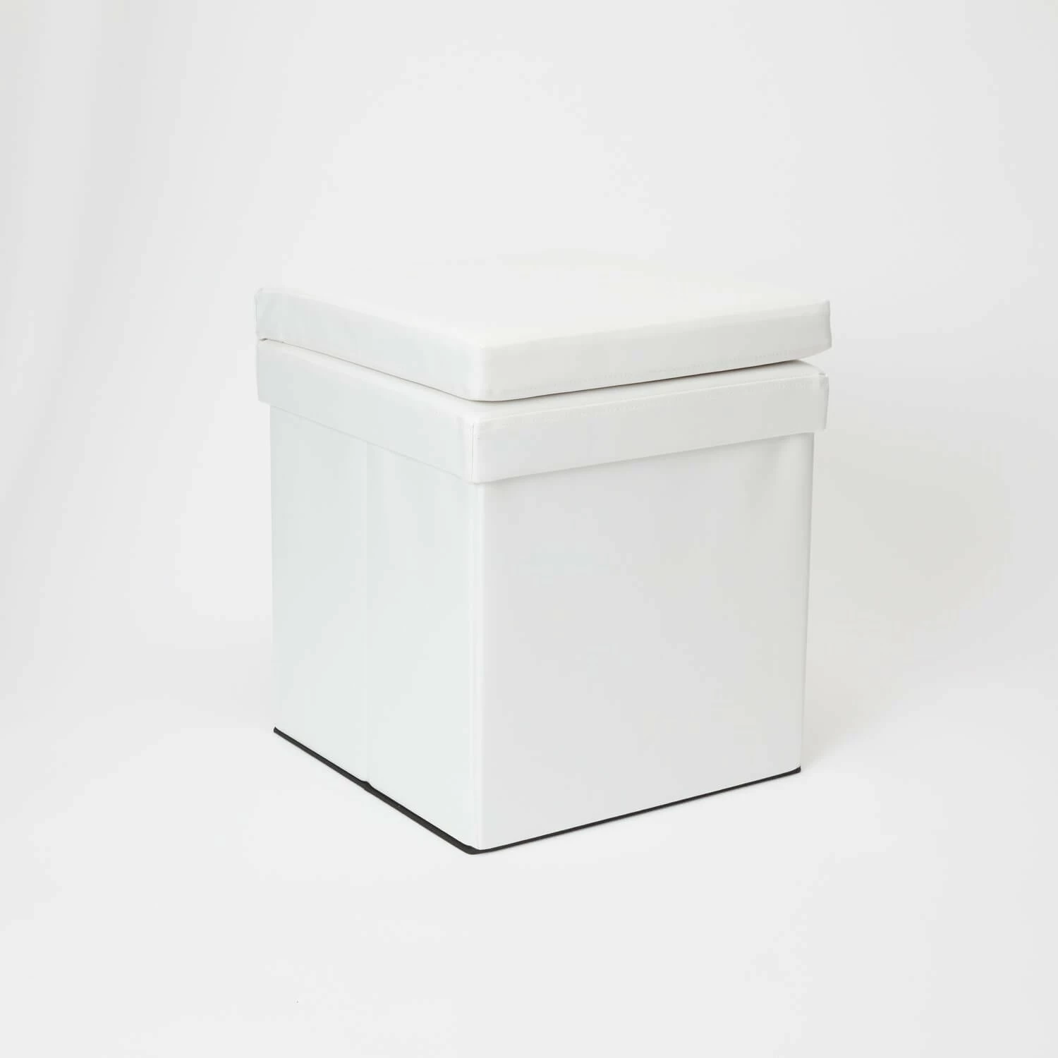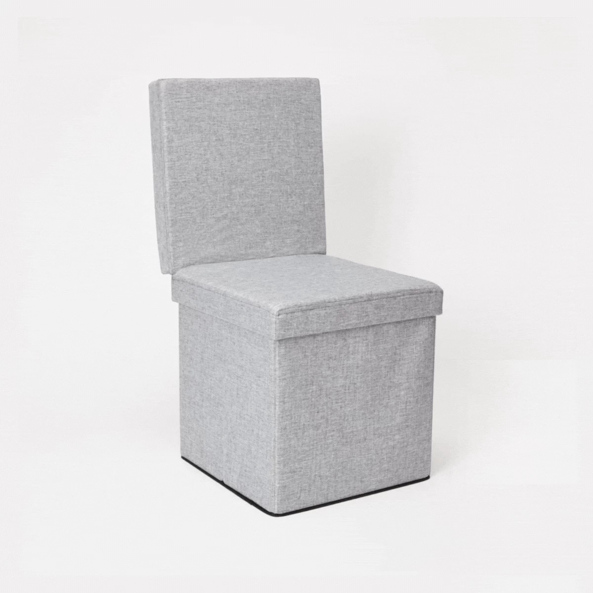 A chair, ottoman, and storage cube, all in one. Not recommended for standing on though! Weight limit for sitting is approximately 200 lbs. The interior shoe insert is easily removed so you can choose exactly what to store. Folds flat when not in use.