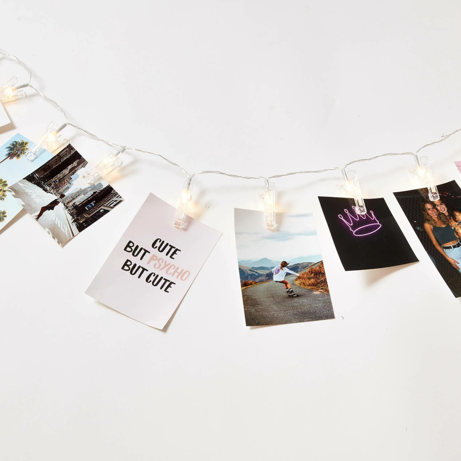 Adds life to your space, whether they’re on or off. With a 9.5 ft long transparent wire and 30 clips for displaying all of your favorite photos, this accessory is the perfect addition to a blank wall that needs some brightness and a place to show off your best memories. LED bulbs. Read back of box for safety tips before use.