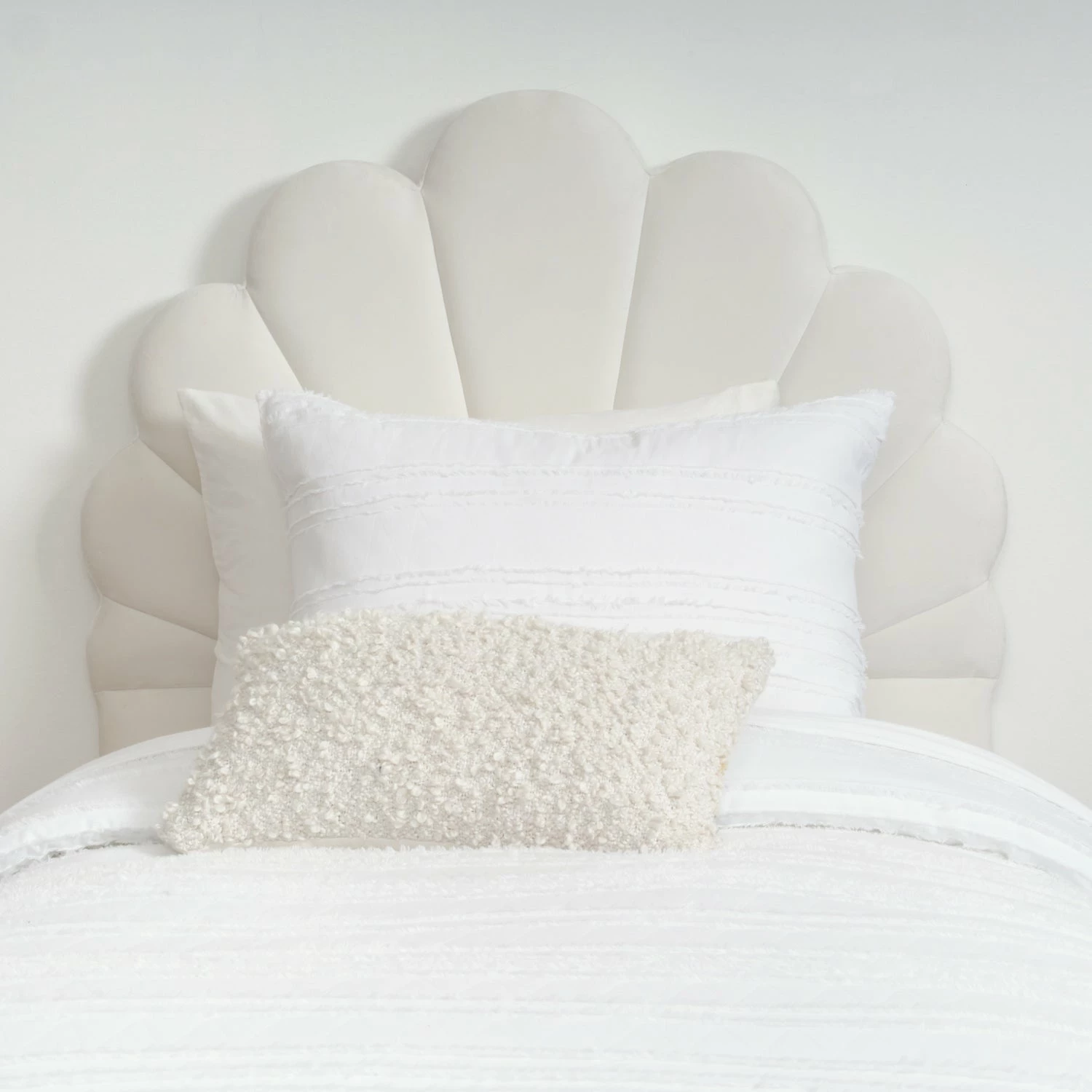 Curvy + cute, this shell-shaped velvet headboard gives your room a gorgeously feminine aesthetic. Plus, it’s lightweight and easy to hang, with a built-in charger station to keep all your tech essentials in easy reach.