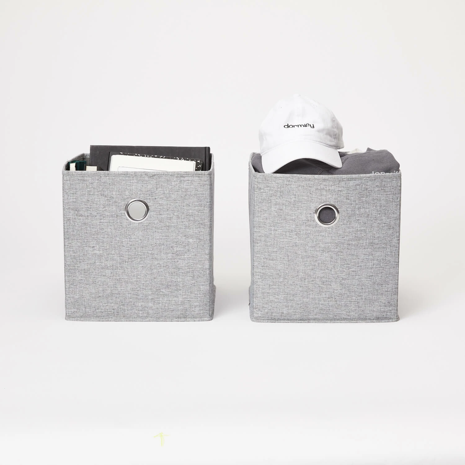 Match perfectly with all of the Dormify closet storage accessories. Comes with two bins, both fold completely flat when not in use.