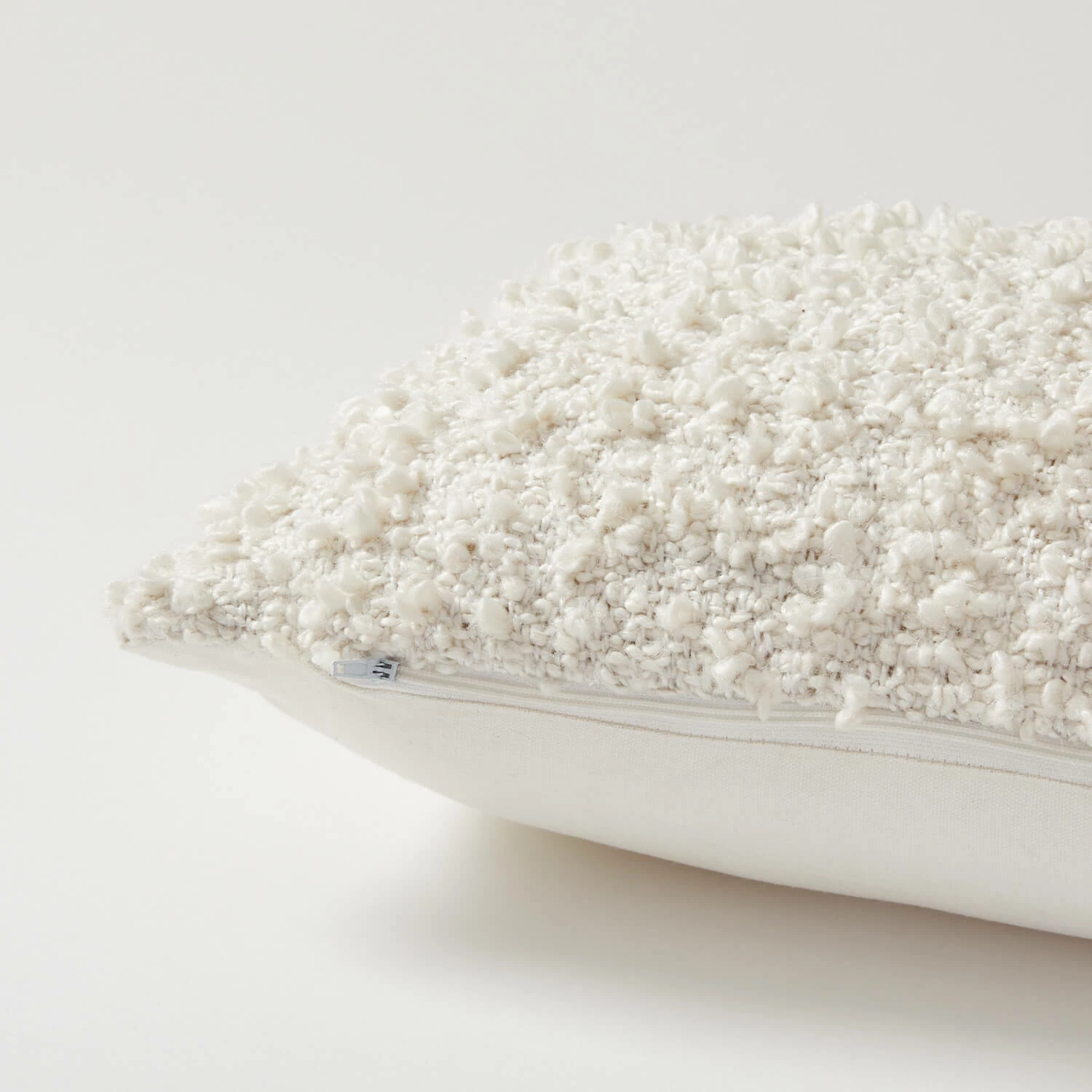 Add a touch of luxe texture to your pillows with this oh-so-cozy boucle pillow cover. It comes with Boucle on the front and a solid cotton back. Lumbar pillow insert sold separately.