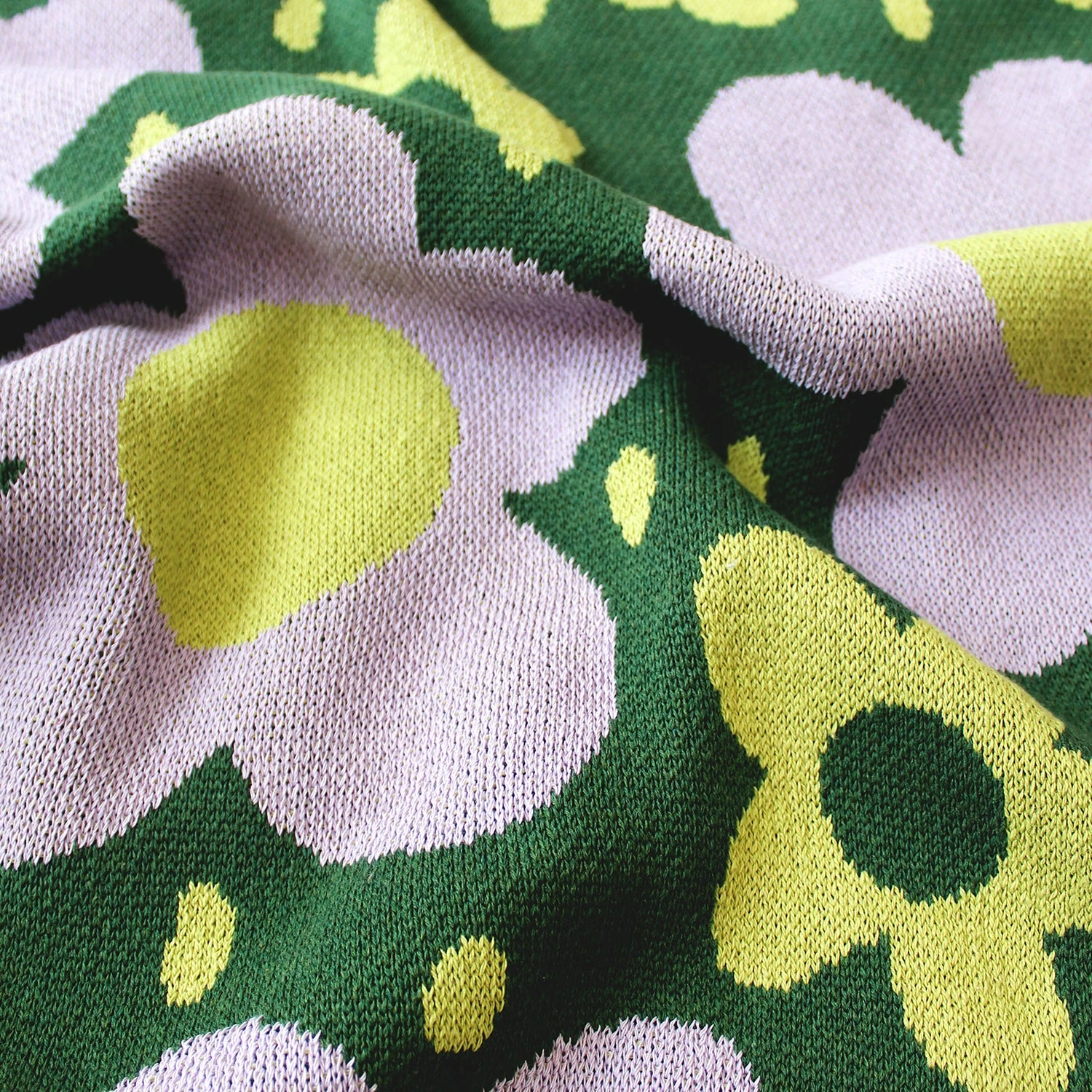 A vintage-inspired print meets a fresh, vibrant color palette on this retro floral throw blanket.