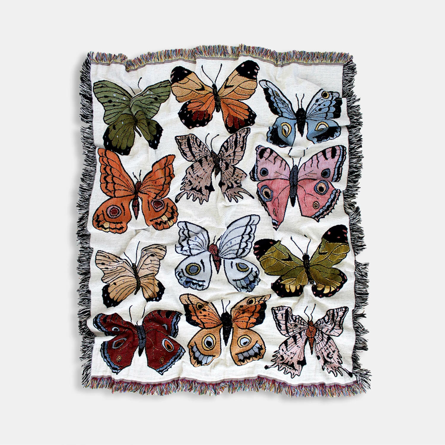 Cozy up wrapped in this fringed throw featuring nature’s most colorful creatures. It’s reversible with two color palettes, perfect for complementing any decor scheme.