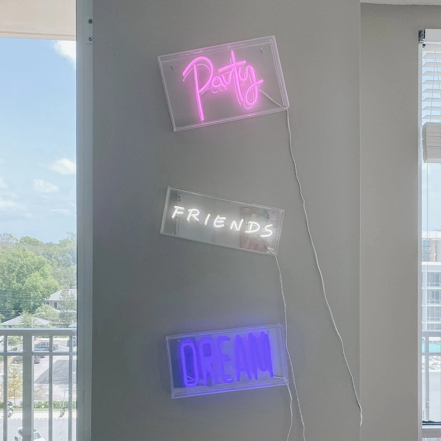 I’ll be there for you. The neon “FRIENDS” sign is perfect to hang in you and your besties’ shared space. Rachel and Monica would totally approve. Powered by plugging into an outlet.