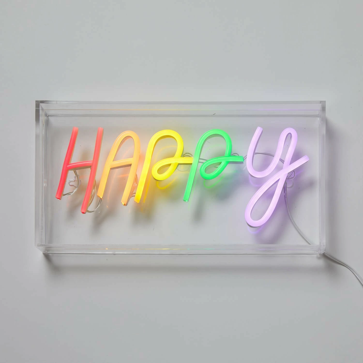 Feeling good. Big smiles. The Happy Neon Sign is a pop of positivity you need in your life. 12″ x 2″ x 6″