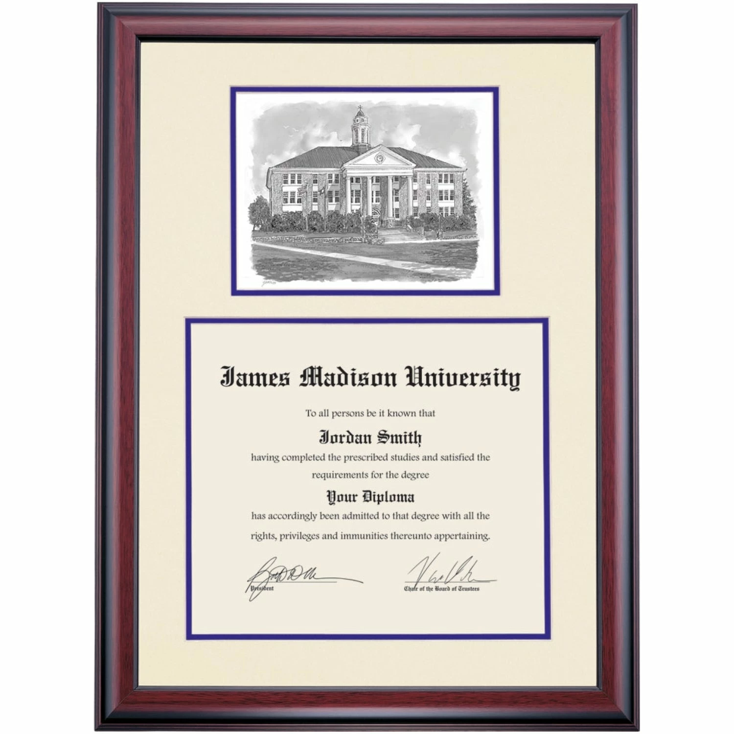 James Madison Premier Wilson Hall Diploma Frame