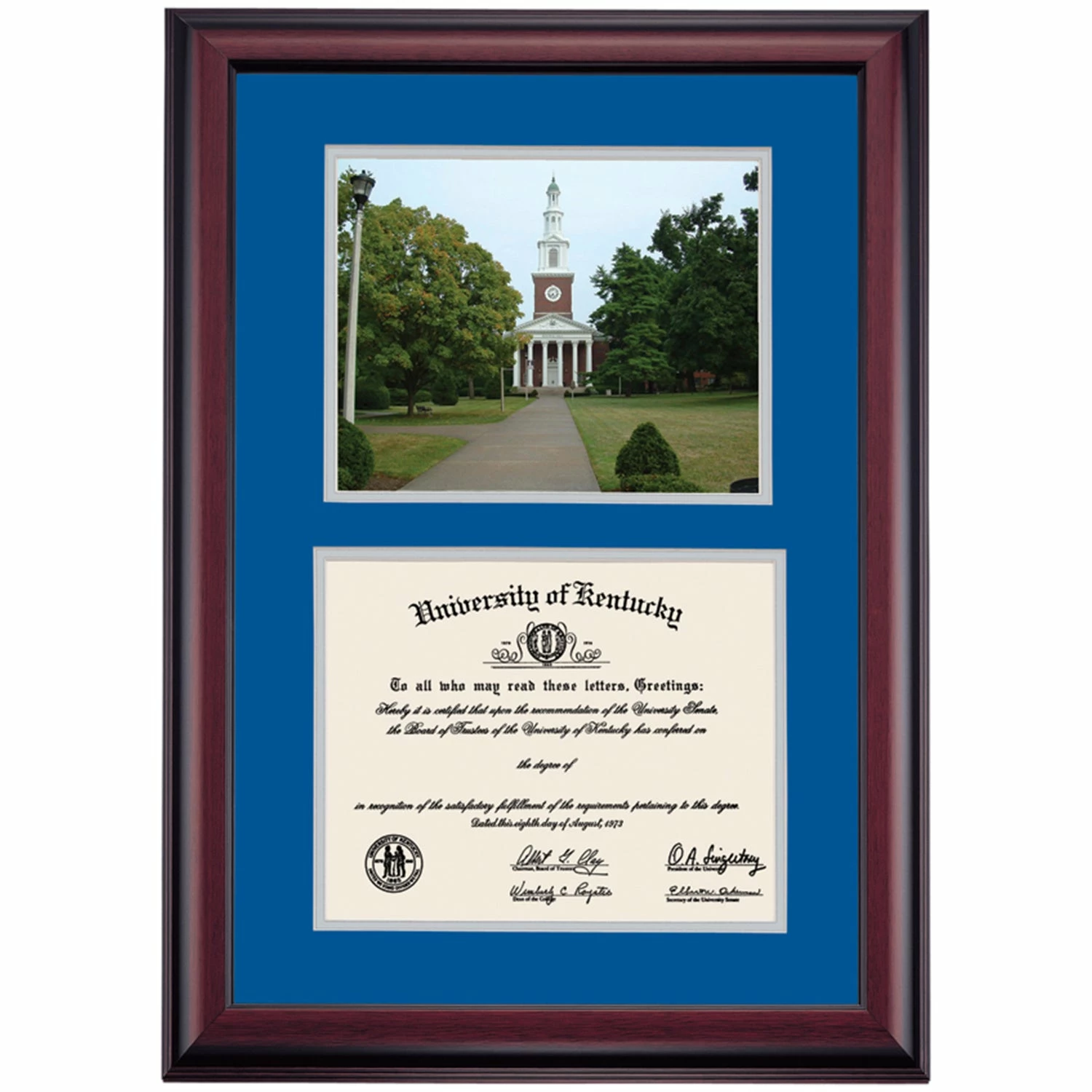 Celebrate your graduation in style with this handcrafted premier diploma frame which includes a Professional Print of Memorial Hall. Custom crafted to fit your University of Kentucky diploma, this frame features accent matting and high quality hardwood moulding.