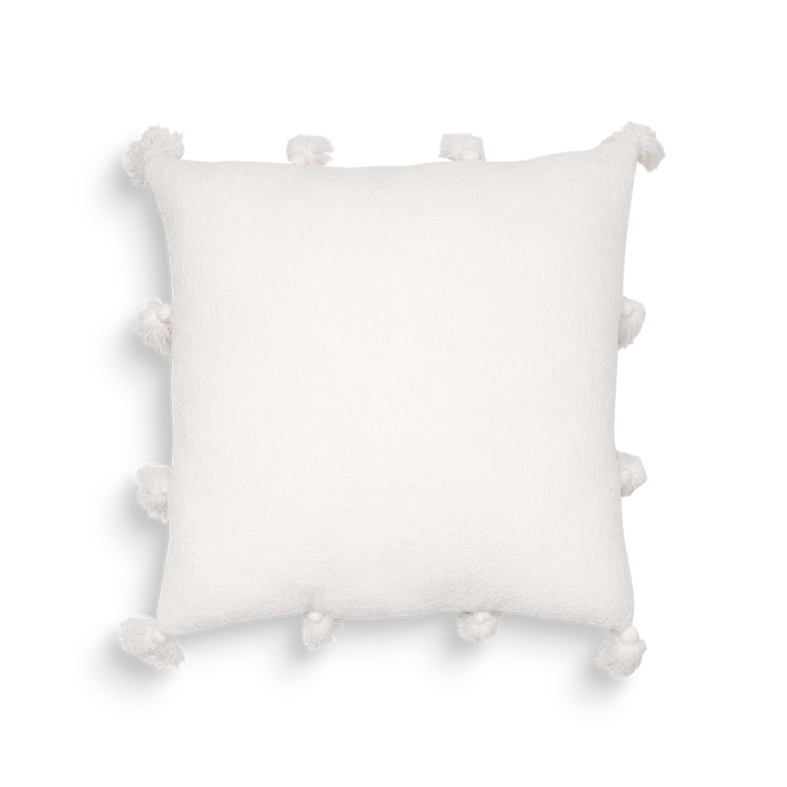 This super chic throw pillow is lined with tassels and made from soft, knit fabric.