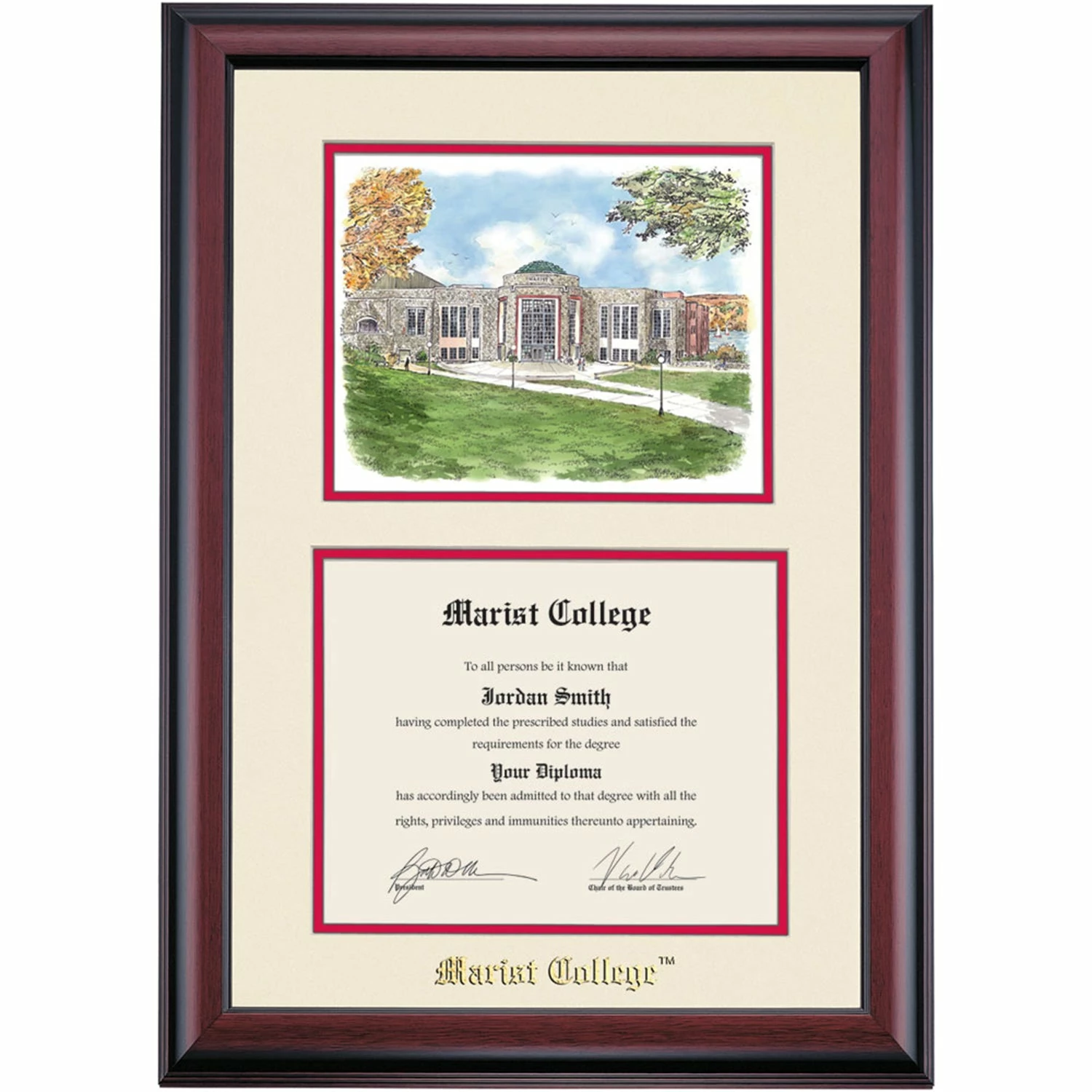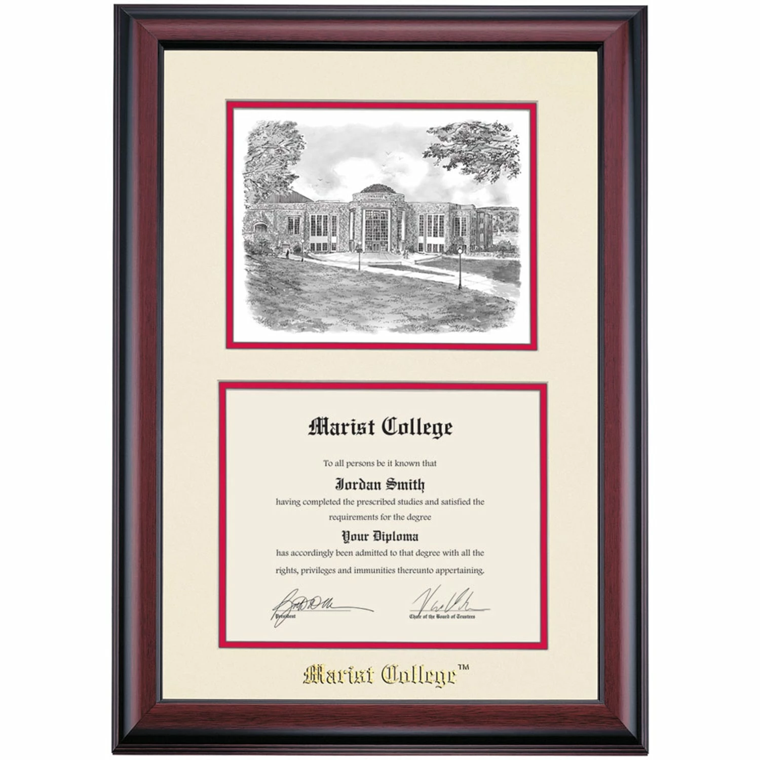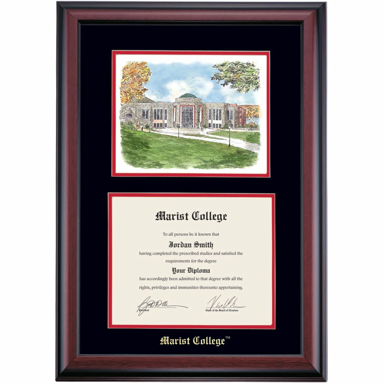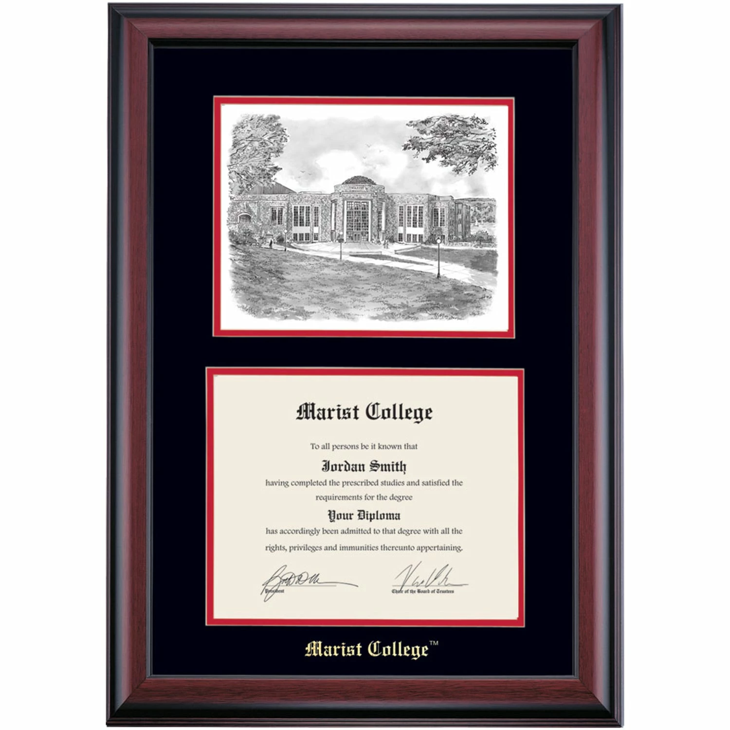 Celebrate your graduation in style with this handcrafted premier diploma frame which includes a Professional Print of The Rotunda. Custom crafted to fit your Marist College diploma, this frame features accent matting and high quality hardwood moulding.
