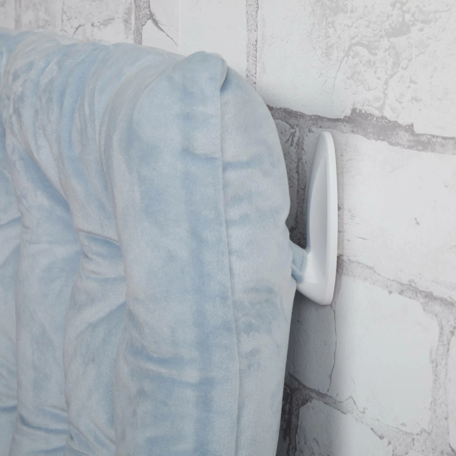 Live it up. Elevate your style with this cushioned headboard that attaches to the wall with adhesive hooks. Our velvet tufted headboard is the perfect backdrop for your bed. The tufted design offers plenty of padding, but we still love the look of stacking pillows up against it to create the ultimate cozy corner.