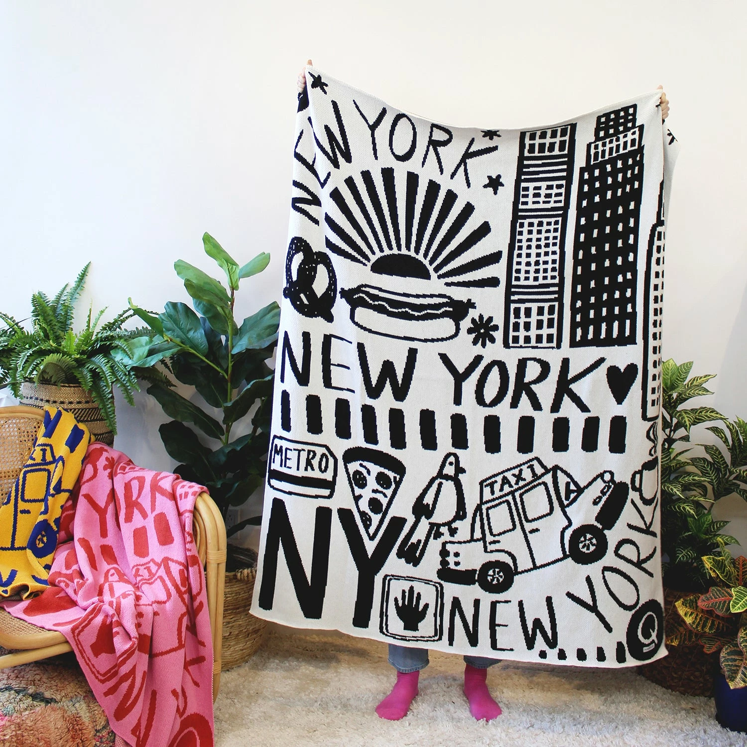 Let yourself daydream of a day in the Big Apple while snuggling up with this New York City-themed blanket. The hand-drawn imagery gives this knit throw a relaxed cool.