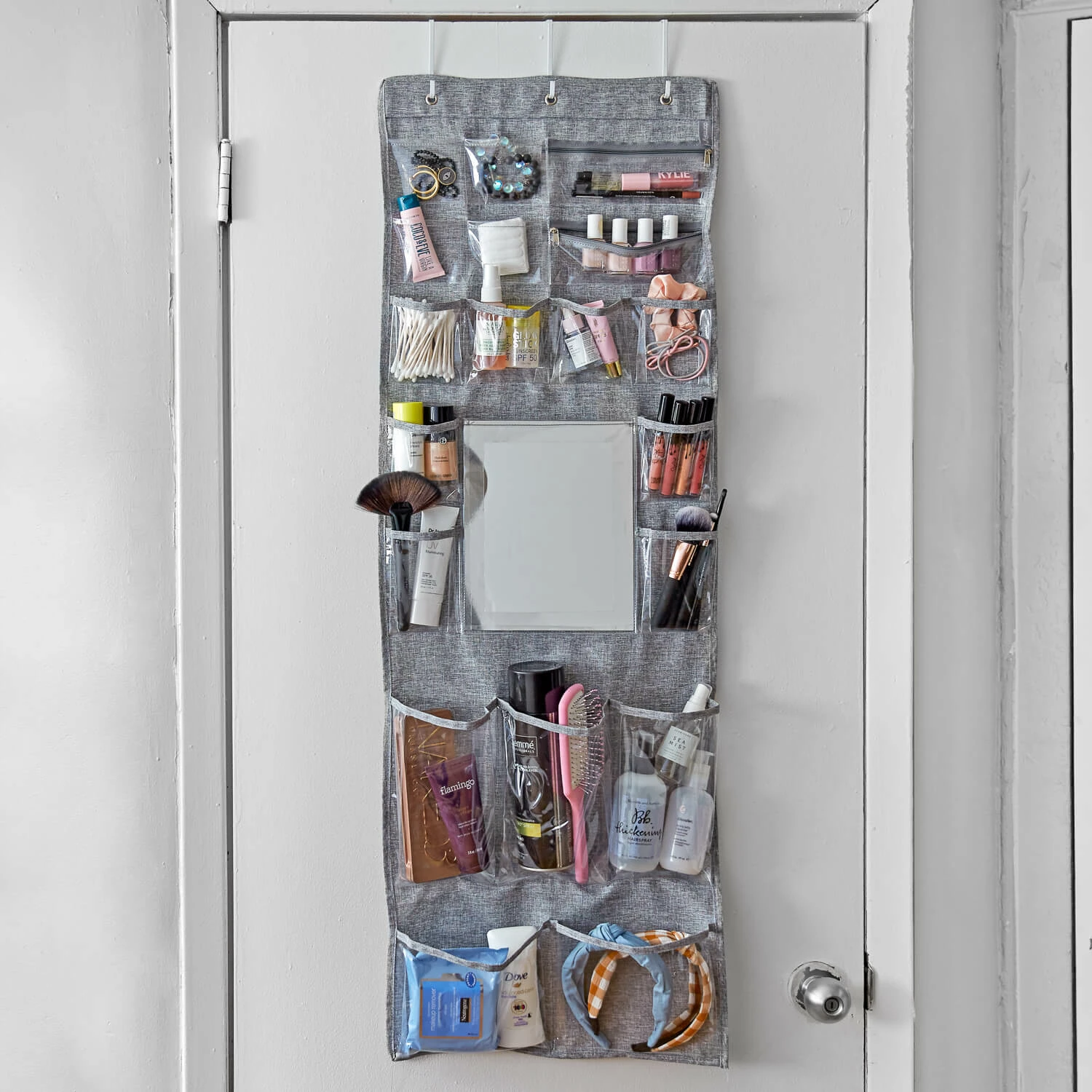 Varying pocket sizes provide a perfect spot for each of your items. Perfect for creating a vanity when counter space is limited.