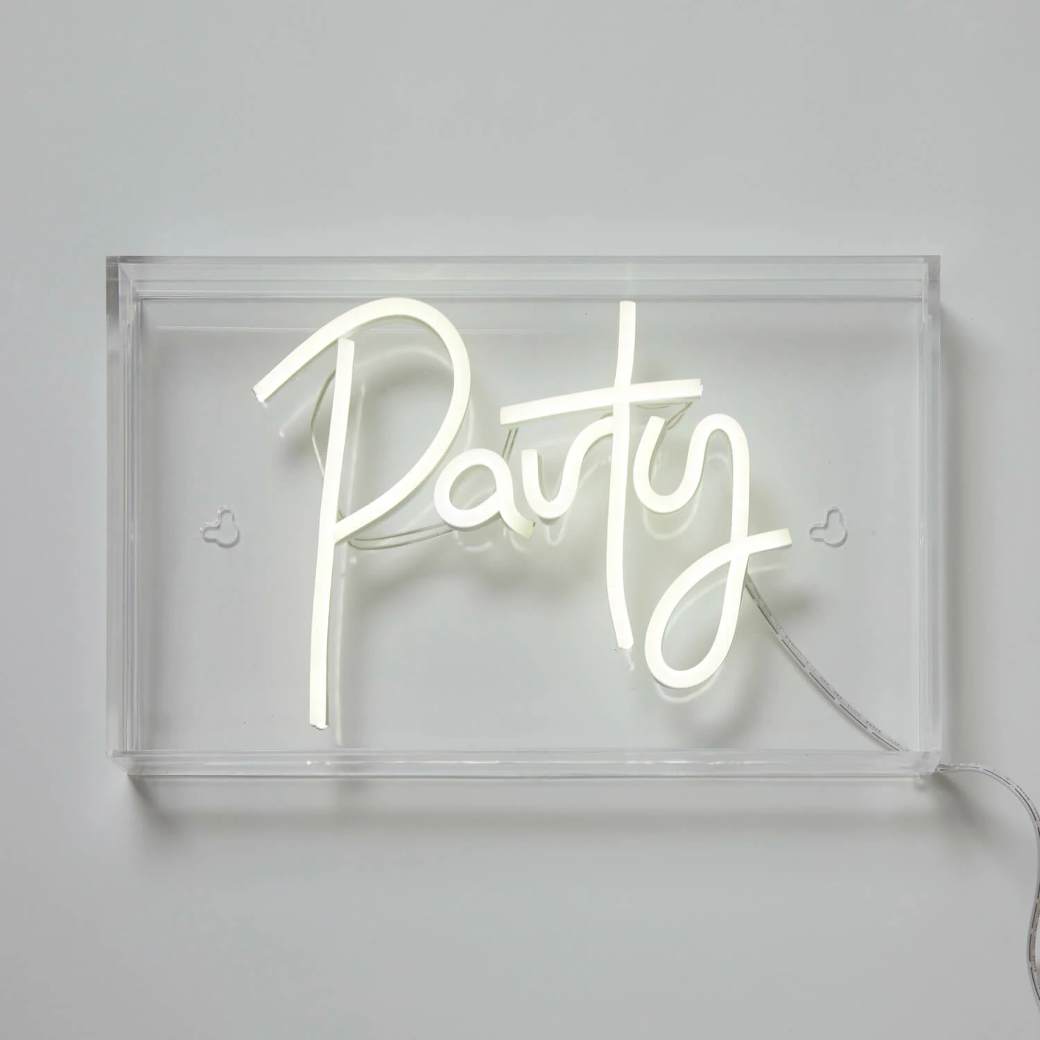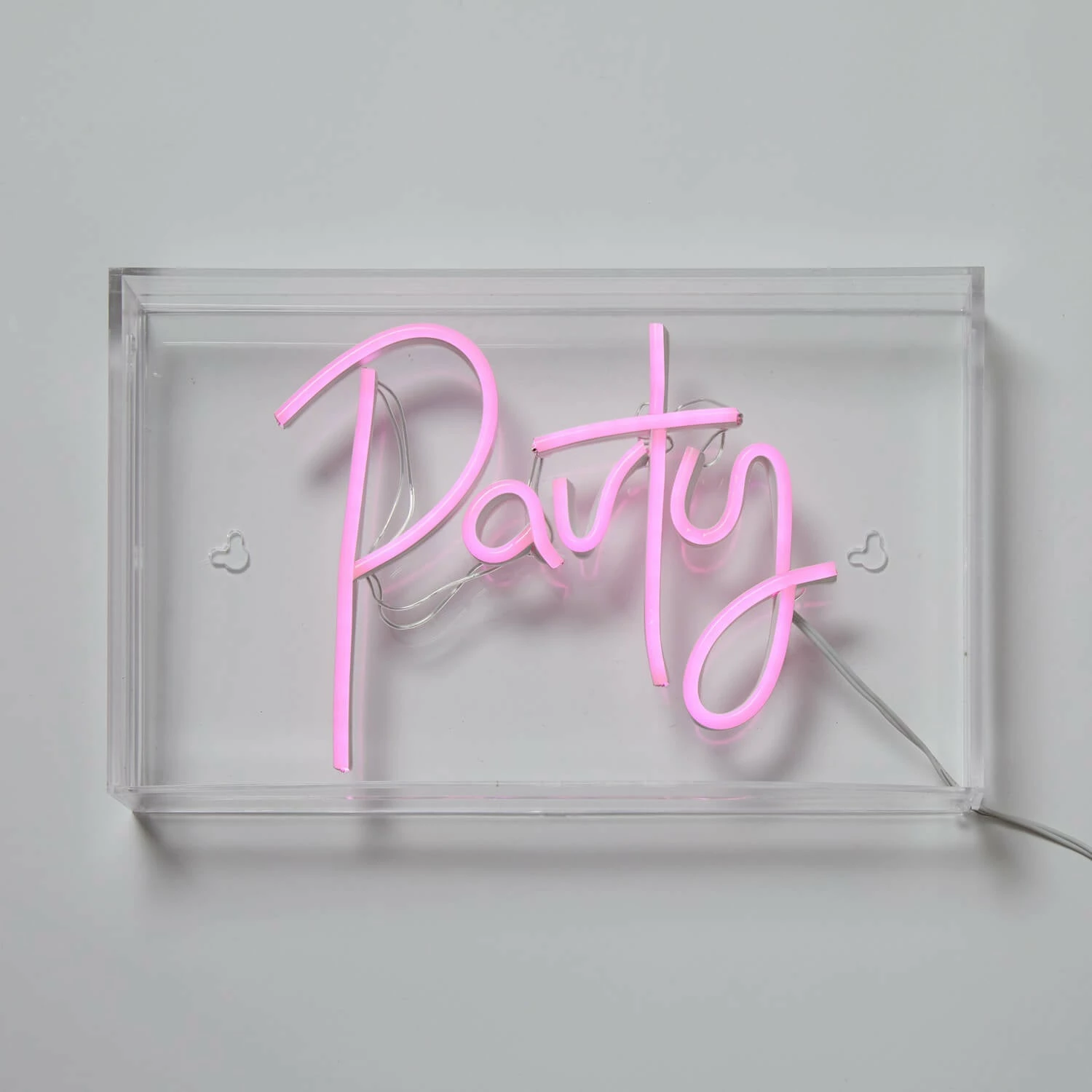 Good times. Bring the fun to your room with this pink “Party” neon sign. A playful font and warm glow will instantly make your space the go-to hangout spot. Powered by plugging into an outlet.