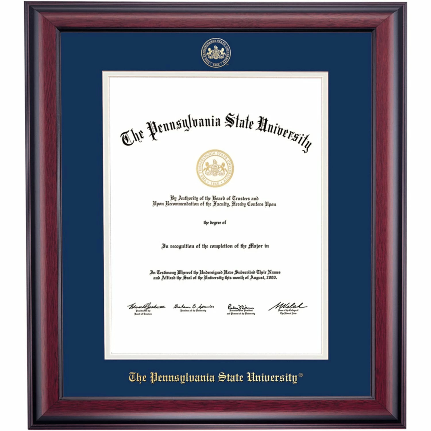 Celebrate your graduation in style with this handcrafted diploma frame. Custom crafted to fit your Penn State University law diploma, this frame is embossed with your school name and seal and features Navy/Grey accent matting and high quality hardwood moulding.