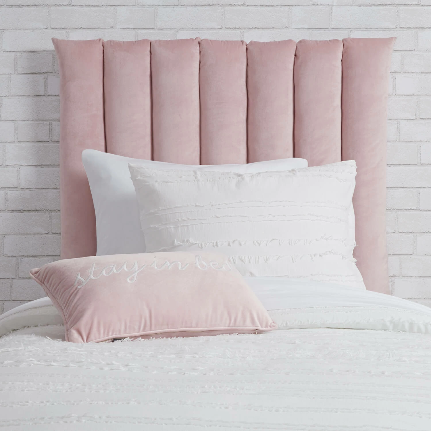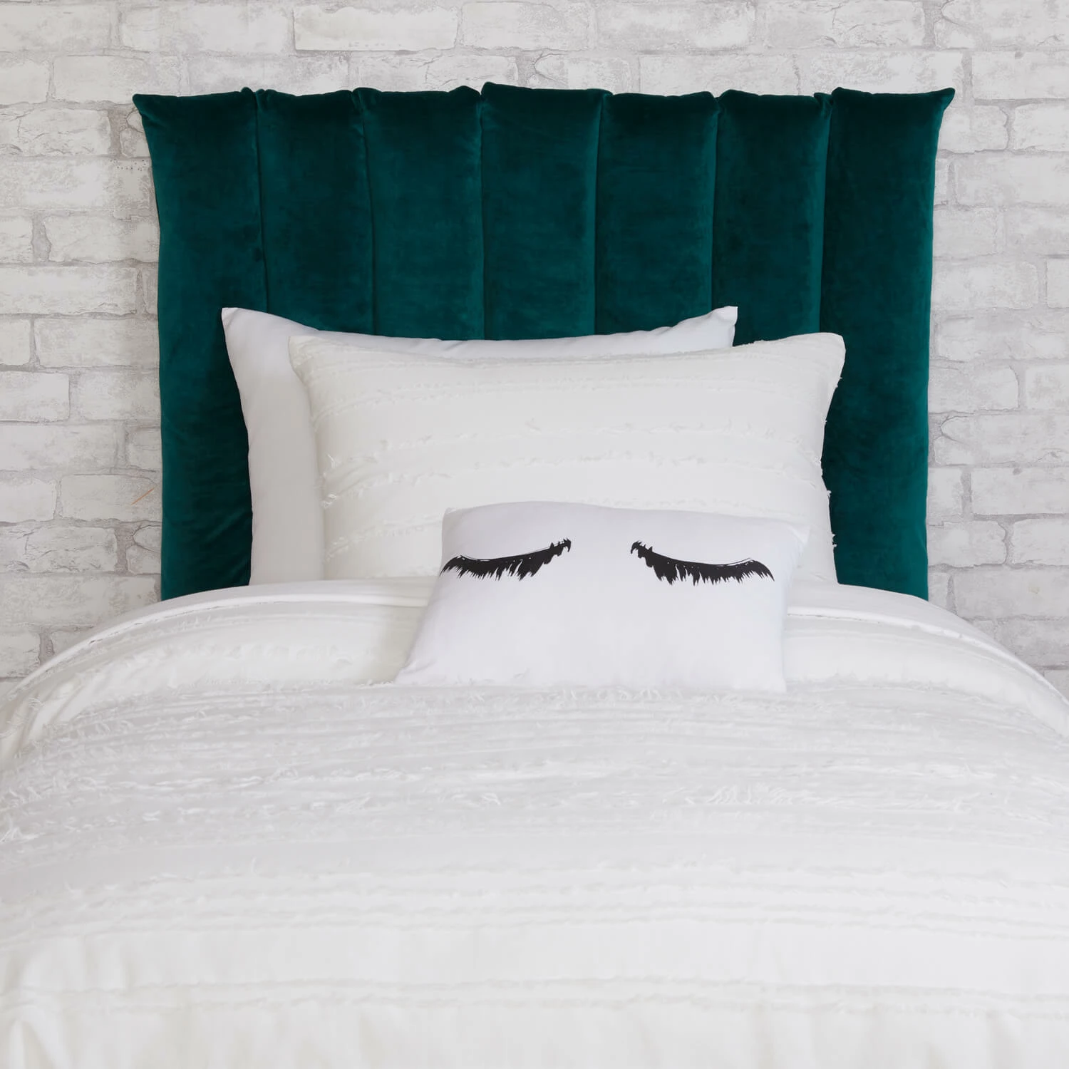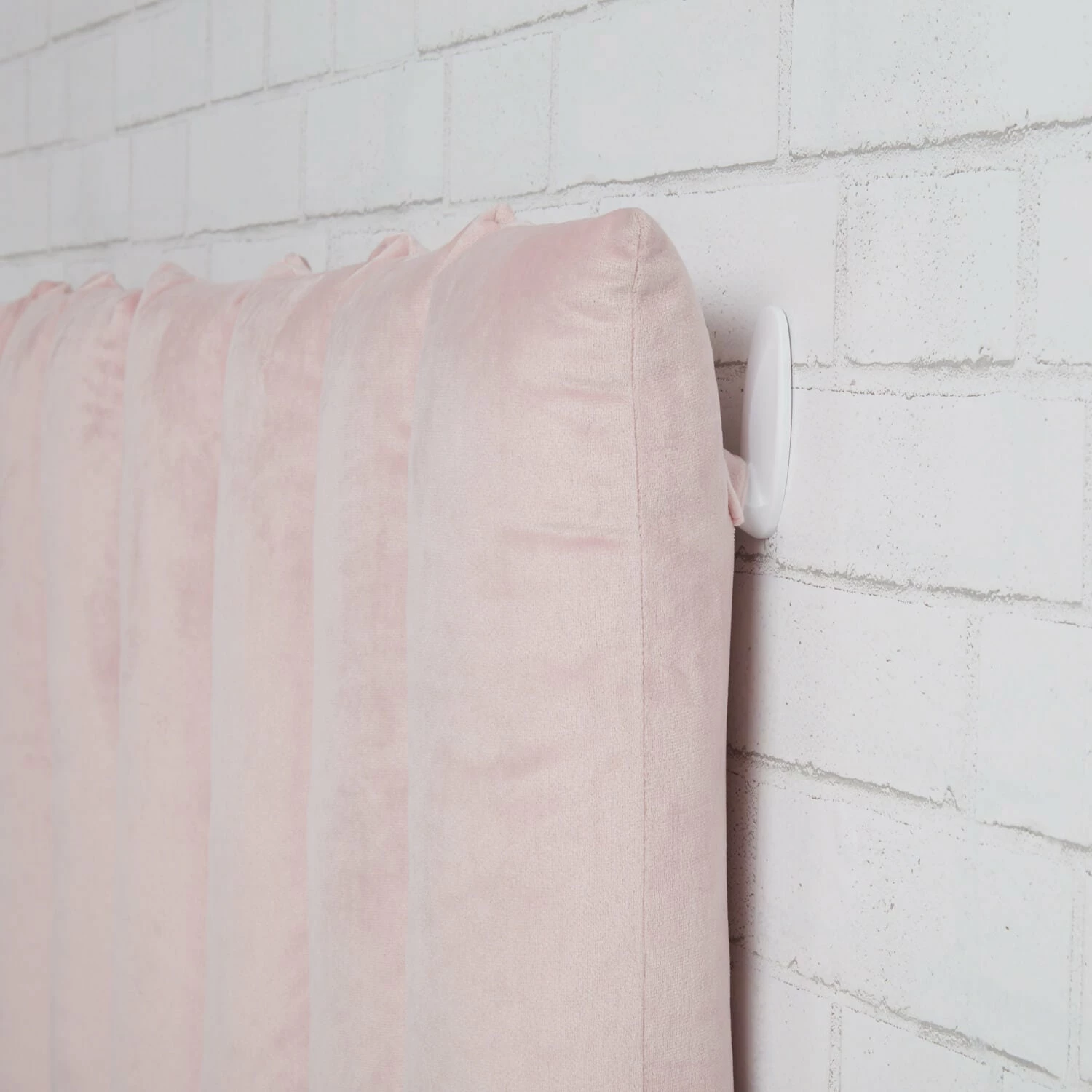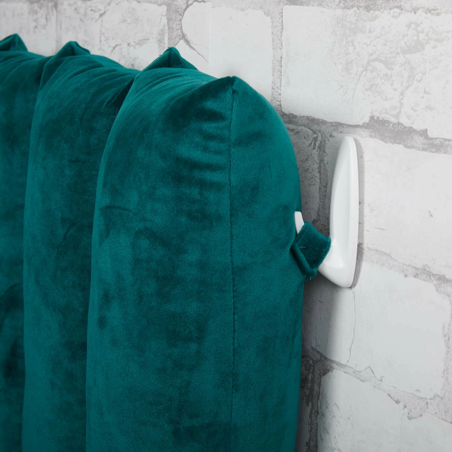 Elevate your style with this cushioned headboard that attaches to the wall with adhesive hooks. Requires six Medium White Command Hooks to secure the back loops of the headboard cushion to the wall.