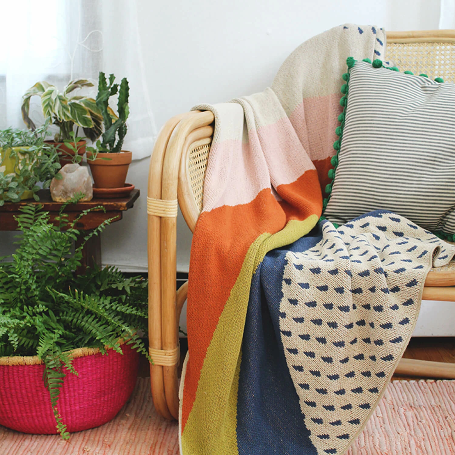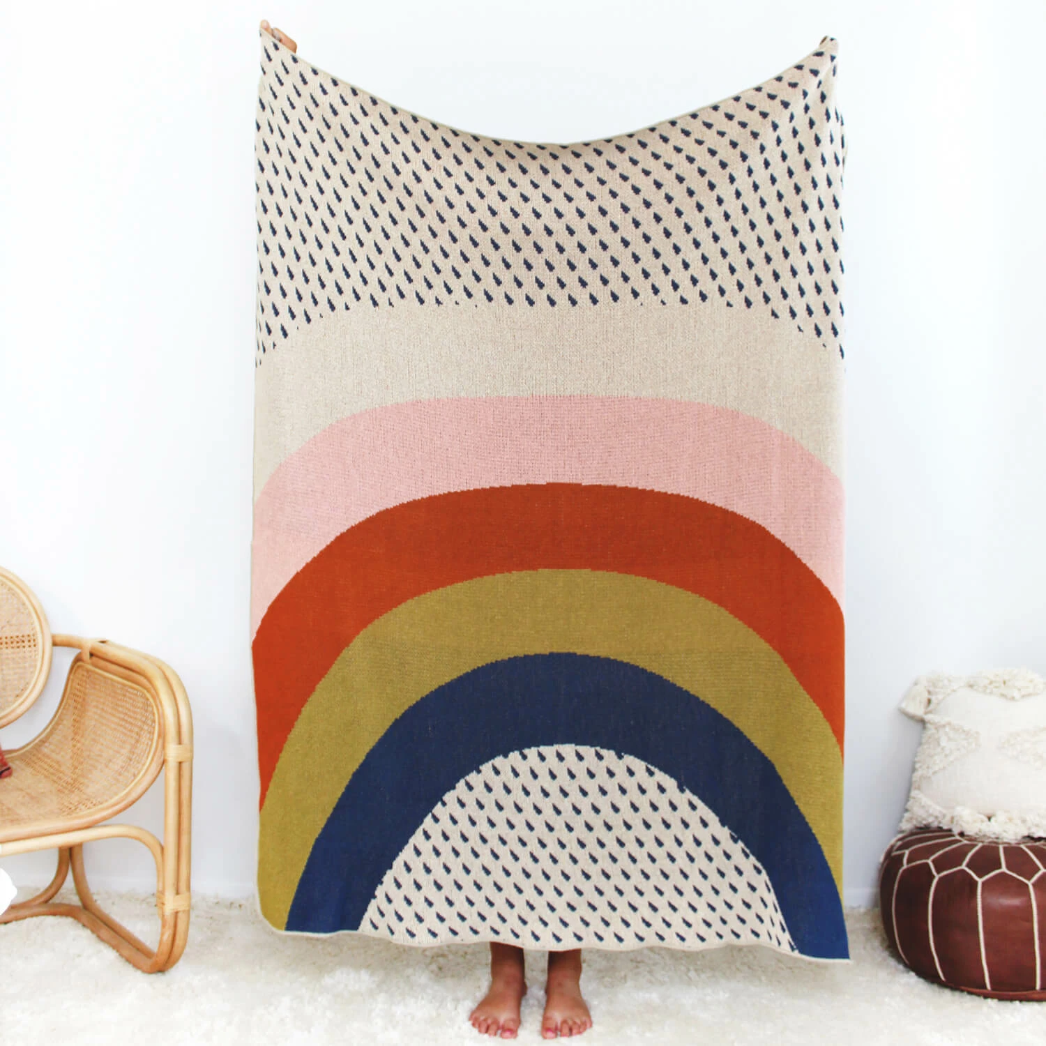 Why wait for a rainy day to enjoy a rainbow? This blanket features an adorable rainbow design in fresh colors, perfect for your space no matter the weather.
