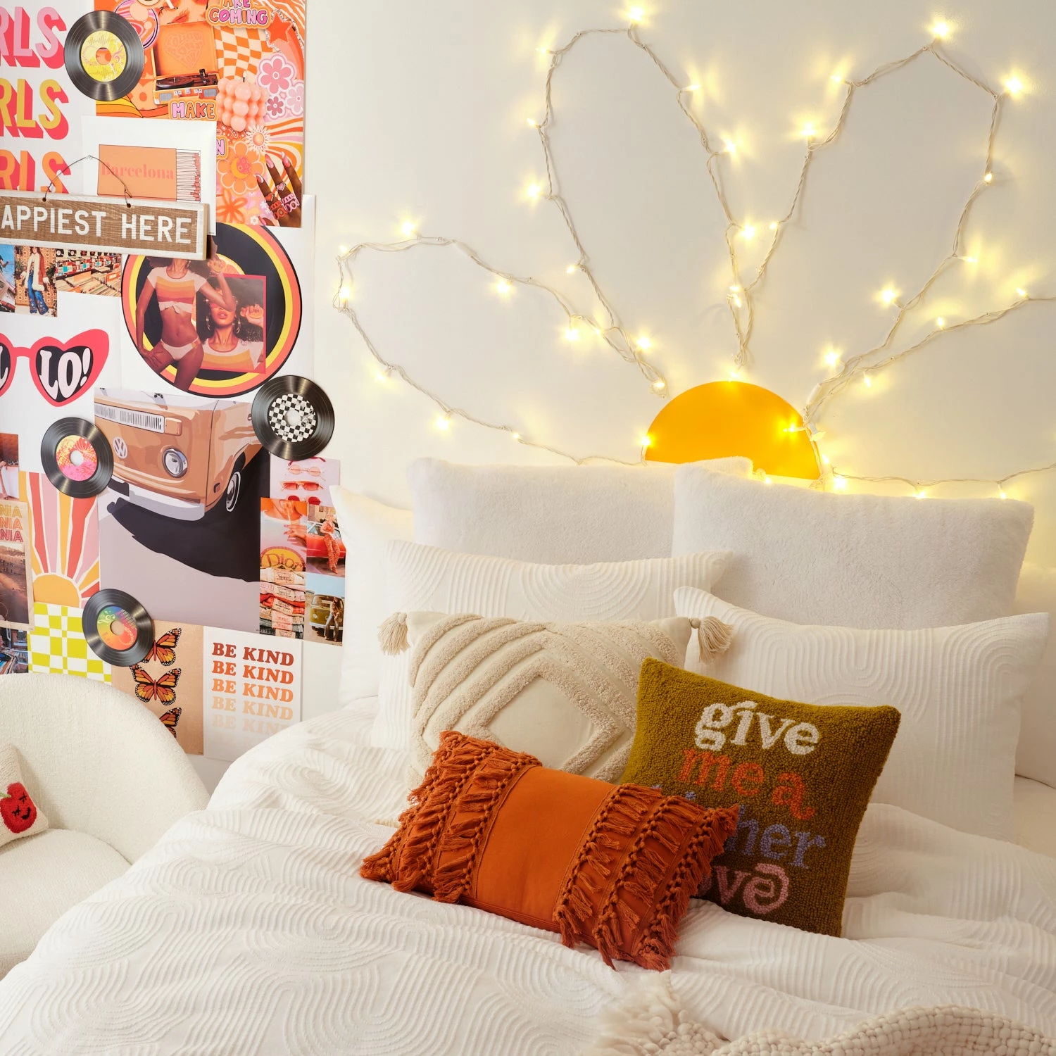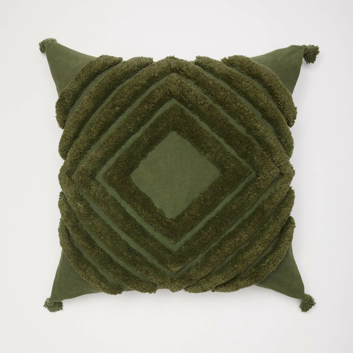 This tufted diamond pattern pillow cover is an instant boho girl favorite—and it’s perfect for layering. It comes with a tufted diamond front and solid cotton back in a variety of colors. Square pillow insert sold separately.