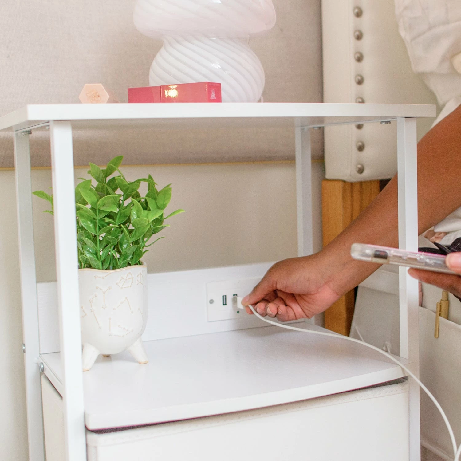Your bedside BFF just got a whole lot better. This all-in-one is the perfect bedside essential for conveniently keeping all your necessities in one space. Plus, its built-in USB ports and outlet give you easy access for charging all of your devices.